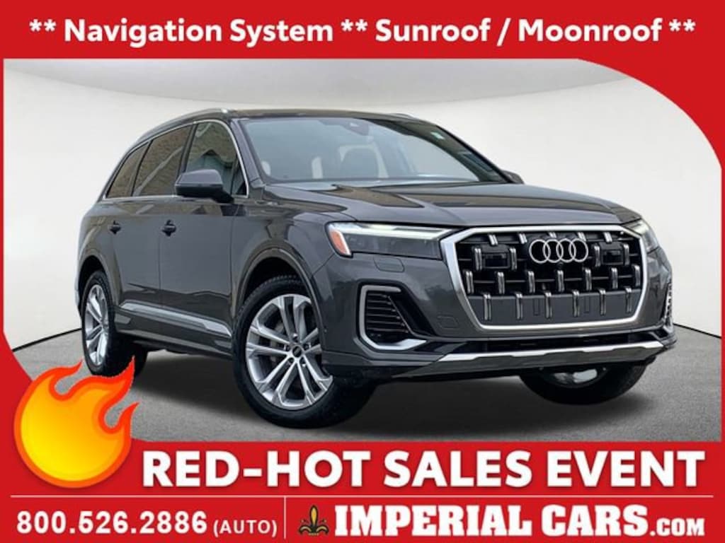 Navigation System, Sunroof / Moonroof, Blind Spot Monitor, Lane Keeping Assistance, Adaptive Cruise Control, Cross Traffic Alert, Apple CarPlay / Android Auto, Power Leather Seats, Heated Seats, Backup Camera, Bluetooth, Cruise Control, Power Windows, Power Locks, Steering Wheels Radio Controls, Aluminum Wheels, Luggage Rack, Third Row Seats, Convenience Package (DISC), Heated Steering Wheel, Navigation system: Audi MMI Navigation plus with Touch Response, Top View Camera System, Wireless Phone Charging Pad. Samurai Gray Metallic 2025 Audi Q7 45 Premium quattro 4D Sport Utility 45 Premium quattro quattro 8-Speed Automatic with TiptronicClean CARFAX. CARFAX One-Owner. 2.0L 4-Cylinder TFSI 20/26 City/Highway MPG Odometer is 823 miles below market average!MORE ABOUT US: Imperial Cars Purchase With Confidence: 1) Free Car Fax Vehicle History Report available for all our vehicles online. 2) Our vehicles are Imperial Certified and go through a rigorous Multi-Point vehicle inspection. 3) Bottom line pricing. 4) 5-Day or 200 Mile Vehicle Exchange Program for your total confidence. If you are not happy with it bring it back within 7 days or 200 miles and we'll give you a credit of your full purchase price toward the purchase of another vehicle. (Excludes Renewed for You vehicles.)Please be aware that the price listed for the vehicle does not include tax, title, registration, documentation fee, or any other applicable fees. However, it does include a trade-in assistance bonus of $1,000 for qualifying retailable trades with less than 10 years of use from the original in-service date. To be eligible for the advertised promotional price, you must pay in full and take delivery of the vehicle from dealer stock on the same day. For the most up-to-date information and Imperial discounts, please call or email our phone and internet team. Please note that the price cannot be combined with any other discounts or promotions and is subject to change based on the market value at any time without notice. To receive the internet special discount, please mention the promo code INTERNET1. While we strive to provide reliable information, please note that the dealer is not responsible for any misprints involving the price and/or description of any vehicle offered for sale. It is your sole responsibility to inspect and verify such information before making a purchase. We want to be transparent in our dealings, and to that end, you can call 800-526-AUTO (2886) to receive your personalized Buy-For-Price. Lastly, please note that we do not sell to wholesalers or dealers, and some of our pre-owned vehicles may be subject to unrepaired safety recalls. To check if any vehicle has unrepaired recalls, you can look up the vehicle's VIN at https://www.nhtsa.gov/recalls.