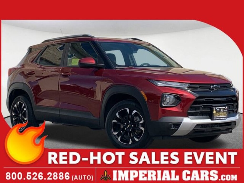 Recent Arrival! Cruise Control, Power Windows, Power Locks, Steering Wheels Radio Controls, Aluminum Wheels. Crimson Metallic 2022 Chevrolet TrailBlazer LT 4D Sport Utility LT AWD 9-Speed AutomaticAwards:* 2022 IIHS Top Safety Pick+Clean CARFAX. 1.3L Ecotec Turbo DOHC SIDI w/VVT 26/30 City/Highway MPGMORE ABOUT US: Imperial Cars Purchase With Confidence: 1) Free Car Fax Vehicle History Report available for all our vehicles online. 2) Our vehicles are Imperial Certified and go through a rigorous Multi-Point vehicle inspection. 3) Bottom line pricing. 4) 5-Day or 200 Mile Vehicle Exchange Program for your total confidence. If you are not happy with it bring it back within 7 days or 200 miles and we'll give you a credit of your full purchase price toward the purchase of another vehicle. (Excludes Renewed for You vehicles.)Please be aware that the price listed for the vehicle does not include tax, title, registration, documentation fee, or any other applicable fees. However, it does include a trade-in assistance bonus of $1,000 for qualifying retailable trades with less than 10 years of use from the original in-service date. To be eligible for the advertised promotional price, you must pay in full and take delivery of the vehicle from dealer stock on the same day. For the most up-to-date information and Imperial discounts, please call or email our phone and internet team. Please note that the price cannot be combined with any other discounts or promotions and is subject to change based on the market value at any time without notice. To receive the internet special discount, please mention the promo code INTERNET1. While we strive to provide reliable information, please note that the dealer is not responsible for any misprints involving the price and/or description of any vehicle offered for sale. It is your sole responsibility to inspect and verify such information before making a purchase. We want to be transparent in our dealings, and to that end, you can call 800-526-AUTO (2886) to receive your personalized Buy-For-Price. Lastly, please note that we do not sell to wholesalers or dealers, and some of our pre-owned vehicles may be subject to unrepaired safety recalls. To check if any vehicle has unrepaired recalls, you can look up the vehicle's VIN at https://www.nhtsa.gov/recalls.