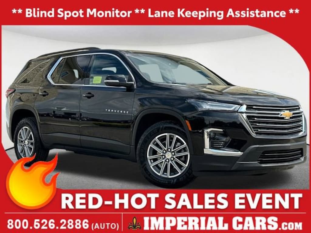 Blind Spot Monitor, Lane Keeping Assistance, Cross Traffic Alert, Apple CarPlay / Android Auto, Power Seats, Heated Seats, Backup Camera, Bluetooth, Cruise Control, Power Windows, Power Locks, Steering Wheels Radio Controls, Aluminum Wheels, Luggage Rack, Third Row Seats, AWD, Cargo Package (LPO), Front License Plate Bracket Mounting Package, Heated Driver & Front Passenger Seats, Preferred Equipment Group 1LT, Rear Park Assist w/Audible Warning, Retractable Cargo Shade, Vertical Cargo Net (LPO). Mosaic Black Metallic 2022 Chevrolet Traverse LT 1LT 4D Sport Utility LT 1LT AWD 9-Speed Automatic