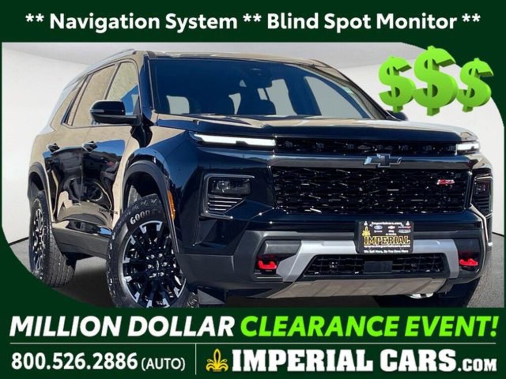 Navigation System, Blind Spot Monitor, Lane Keeping Assistance, Adaptive Cruise Control, Cross Traffic Alert, Apple CarPlay / Android Auto, Power Leather Seats, Heated Seats, Backup Camera, Bluetooth, Cruise Control, Power Windows, Power Locks, Steering Wheels Radio Controls, Aluminum Wheels, Luggage Rack, Third Row Seats, AWD, Navigation System, Preferred Equipment Group 2Z7. Mosaic Black Metallic 2025 Chevrolet Traverse Z71 4D Sport Utility Z71 AWD 8-Speed Automatic
