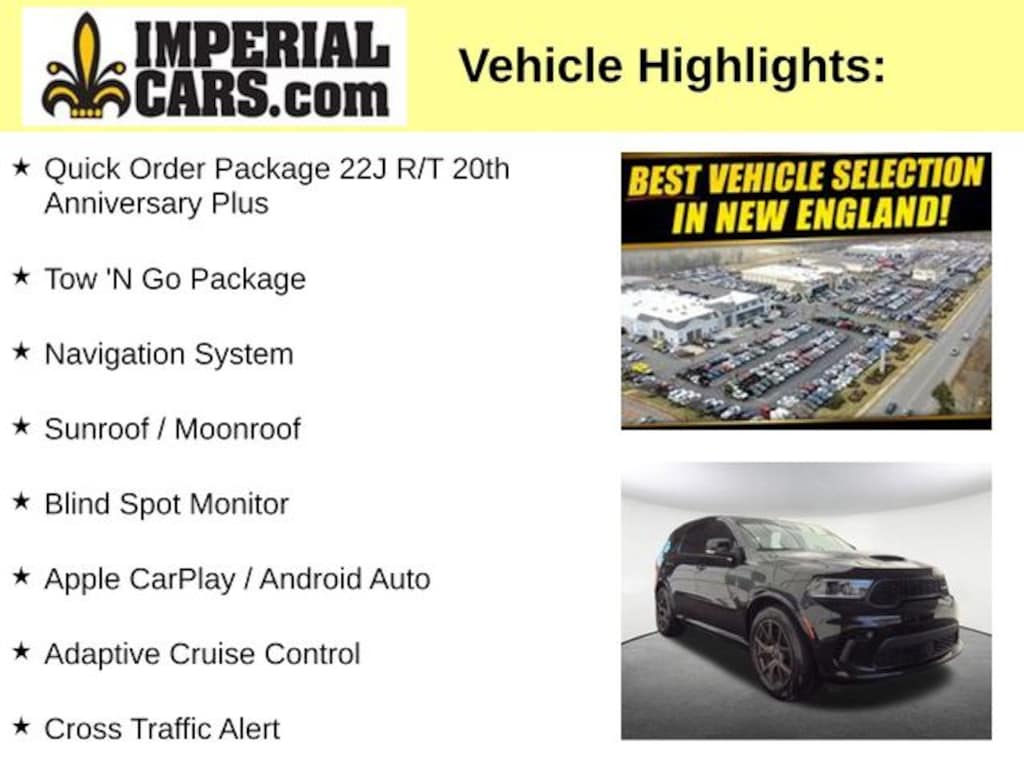 Boasting the latest technological features inside an attractive and versatile package! With fewer than 15,000 miles on the odometer, this 4 door sport utility vehicle prioritizes comfort, safety and convenience. Dodge prioritized fit and finish as evidenced by: power door mirrors and heated door mirrors, cruise control, and more. Under the hood you'll find an 8 cylinder engine with more than 350 horsepower, and load leveling rear suspension maintains a comfortable ride. Well tuned suspension and stability control deliver a spirited, yet composed, ride and drive