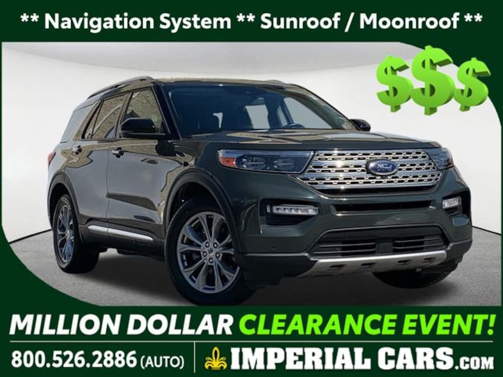 Navigation System, Sunroof / Moonroof, Apple CarPlay / Android Auto, Lane Keeping Assistance, Adaptive Cruise Control, Cross Traffic Alert, Power Leather Seats, Heated Seats, Backup Camera, Bluetooth, Cruise Control, Power Windows, Power Locks, Steering Wheels Radio Controls, Aluminum Wheels, Luggage Rack, Third Row Seats, 4WD, 110V/150W AC Power Outlet, 3rd Row PowerFold Seat, Class IV Trailer Tow Package, Equipment Group 301A, Hands-Free Foot-Activated Liftgate, Limited Convenience Package, Memory Driver's Seat, Navigation System, Power Tilt/Telescoping Steering Column, Sideview Mirrors w/Gloss Black Caps. Forged Green Metallic 2022 Ford Explorer Limited 4D Sport Utility Limited 4WD 10-Speed Automatic