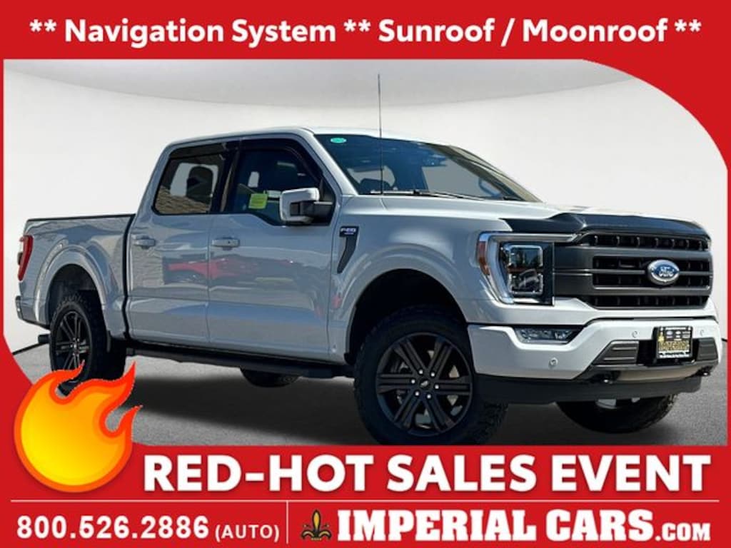 Navigation System, Sunroof / Moonroof, Blind Spot Monitor, Apple CarPlay / Android Auto, Lane Keeping Assistance, Adaptive Cruise Control, Cross Traffic Alert, Power Leather Seats, Heated Seats, Backup Camera, Bluetooth, Remote Engine Starter, Cruise Control, Power Windows, Power Locks, Steering Wheels Radio Controls, Aluminum Wheels, Running Boards / Side Steps, Towing Package, 4WD, 2nd Row Heated Seats, Accent-Color Angular Step Bars, Body-Color Front & Rear Bumpers, Box Side Decals, Chrome Single-Tip Exhaust, Connected Built-In Navigation, Dark 2-Bar & 1 Minor Bar Style Grille, Equipment Group 502A High, Evasive Steering Assist, Ford Co-Pilot360 Assist 2.0, Intelligent Adaptive Cruise Control w/Stop & Go, Intersection Assist, Lariat Sport Appearance Package, LED Projector w/Dynamic Bending Headlamps, Power Tilt/Telescoping Steering Column w/Memory, Rain-Sensing Wipers, Speed Sign Recognition, Wheels: 20" Chrome-Like PVD, Wireless Charging Pad. Carbonized Gray Metallic 2023 Ford F-150 Lariat 4D SuperCrew Lariat 4WD 10-Speed Automatic