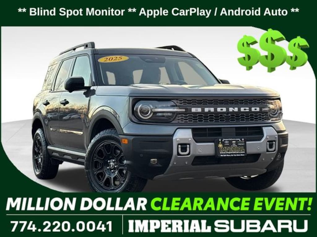 Experience the thrill of the open road and the freedom of the great outdoors with the 2025 Ford Bronco Sport Badlands. Visit our showroom today and let us demonstrate how this exceptional SUV can transform your driving experience. Some of our Pre-Owned vehicles may be subject to unrepaired safety recalls. Check for a vehicleâs unrepaired recalls by VIN at http://vinrcl.safercar.gov/vin/