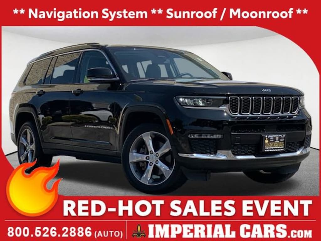 Navigation System, Sunroof / Moonroof, Blind Spot Monitor, Apple CarPlay / Android Auto, Power Leather Seats, Heated Seats, Backup Camera, Bluetooth, Cruise Control, Power Windows, Power Locks, Steering Wheels Radio Controls, Aluminum Wheels, Luggage Rack, Third Row Seats, GPS Navigation, Quick Order Package 22E. Diamond Black Crystal Pearlcoat 2021 Jeep Grand Cherokee L Limited 4D Sport Utility Limited 4WD 8-Speed Automatic