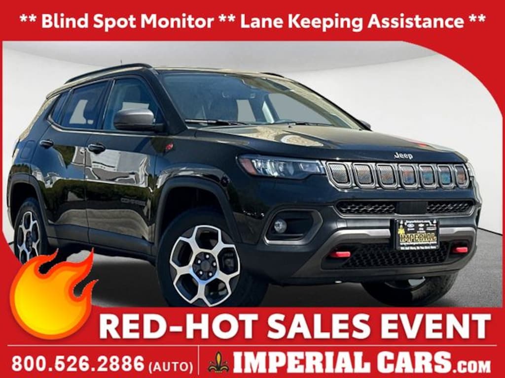 New Price! Recent Arrival! Blind Spot Monitor, Lane Keeping Assistance, Apple CarPlay / Android Auto, Adaptive Cruise Control, Cross Traffic Alert, Backup Camera, Bluetooth, Cruise Control, Power Windows, Power Locks, Steering Wheels Radio Controls, Aluminum Wheels, Luggage Rack, 4WD, Quick Order Package 2GE. Diamond Black Crystal Pearlcoat 2022 Jeep Compass Trailhawk 4D Sport Utility Trailhawk 4WD 9-Speed 948TE Automatic