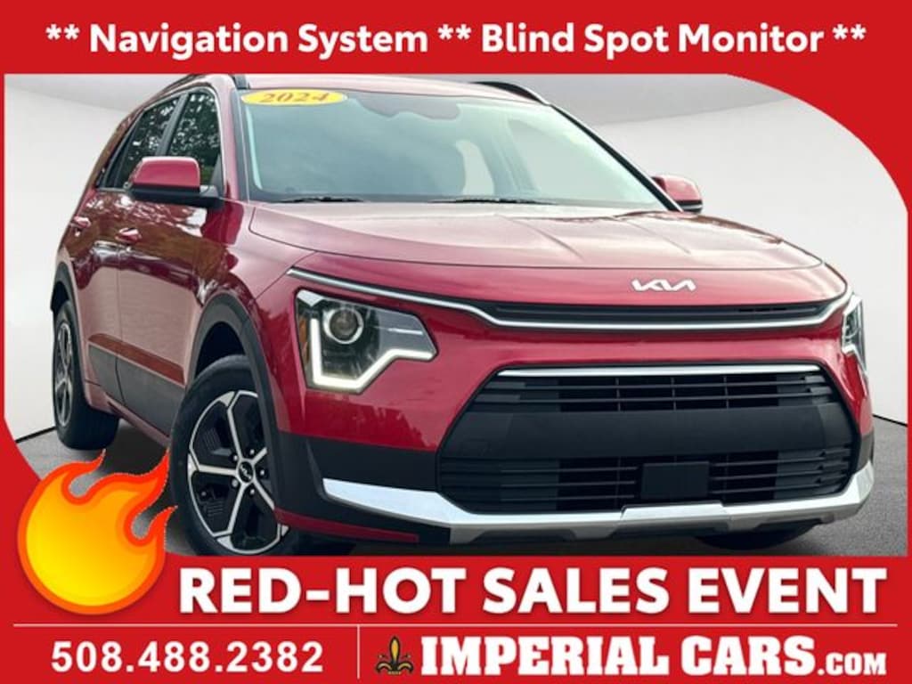 Navigation System, Blind Spot Monitor, Lane Keeping Assistance, Apple CarPlay / Android Auto, Adaptive Cruise Control, Cross Traffic Alert, Power Seats, Heated Seats, Backup Camera, Bluetooth, Cruise Control, Power Windows, Power Locks, Steering Wheel Radio Controls, Aluminum Wheels, Luggage Rack, 1.6L I4 DGI Hybrid DOHC 16V LEV3-SULEV30, Navigation System. Runway Red 2024 Kia Niro EX EX 4D Sport Utility 1.6L I4 DGI Hybrid DOHC 16V LEV3-SULEV30 FWD 6-Speed Automatic