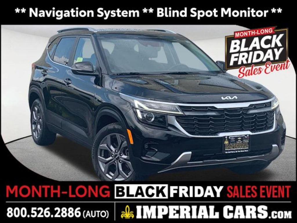 Navigation System, Blind Spot Monitor, Apple CarPlay / Android Auto, Lane Keeping Assistance, Cross Traffic Alert, Power Seats, Heated Seats, Backup Camera, Bluetooth, Cruise Control, Power Windows, Power Locks, Steering Wheels Radio Controls, Aluminum Wheels, Luggage Rack, Navigation System, Navy Interior Color Package. Fusion Black 2024 Kia Seltos S 4D Sport Utility S AWD CVT