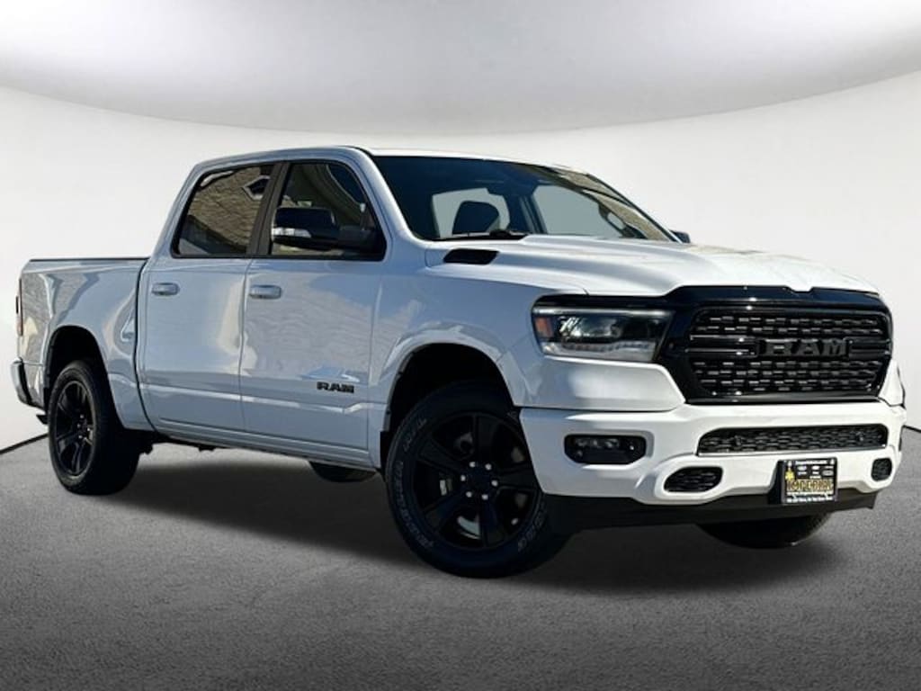 Recent Arrival! Apple CarPlay / Android Auto, Cross Traffic Alert, Power Seats, Heated Seats, Backup Camera, Bluetooth, Cruise Control, Power Windows, Power Locks, Steering Wheels Radio Controls, Aluminum Wheels, Towing Package, 115V Auxiliary Power Outlet, 115V Auxiliary Rear Power Outlet, 2nd Row In Floor Storage Bins, 3 Rear Seat Head Restraints, 4 Way Front Headrests, 400W Inverter, 4G LTE Wi-Fi Hot Spot, 8.4" Touchscreen Display, Air Conditioning ATC w/Dual Zone Control, Anti-Spin Differential Rear Axle, Apple CarPlay, Auto-Dimming Exterior Driver Mirror, Auto-Dimming Rear-View Mirror, Big Horn Badge, Big Horn Level 2 Equipment Group, Black Exterior Mirrors, Black Exterior Truck Badging, Black Headlamp Bezels, Black Interior Accents, Black Premium Power Mirrors, Bluetooth Handsfree Phone & Audio, Body Color Front Bumper, Body Color Rear Bumper w/Step Pads, Bucket Seats, Class IV Receiver Hitch, Cluster 7.0" TFT Color Display, Connectivity - US/Canada, Convex Wide-Angle Mirror Insert, Delete LED Lamp - Floor Console Bin, Deluxe Cloth Bucket Seats, Dual Exhaust w/Black Tips, Exterior Mirrors Courtesy Lamps, Exterior Mirrors w/Heating Element, Exterior Mirrors w/Supplemental Signals, For Details, Visit DriveUconnect.com, Front LED Fog Lamps, Front Seat Back Map Pockets, Full Length Floor Console, Global Telematics Box Module (TBM), Glove Box Lamp, Google Android Auto, GPS Antenna Input, Heated Front Seats, Heated Steering Wheel, Integrated Center Stack Radio, LED Reflector Headlamps, LED Taillamps, Manual Adjust 4-Way Front Passenger Seat, Media Hub w/2 Charge Only USBs, Night Edition (DISC), ParkSense Front/Rear Park Assist w/Stop, Power 2-Way Driver Lumbar Adjust, Power 8-Way Driver Seat, Power Adjustable Pedals, Power-Folding Mirrors, Premium Lighting Group, Quick Order Package 23Z Big Horn, Radio: Uconnect 5 W w/8.4" Display, Rear 60/40 Folding Seat, Rear Center Armrest, Rear Dome w/On/Off Switch Lamp, Rear Power Sliding Window, Rear Window Defroster, Remote Start System, Security Alarm, SiriusXM Radio Service, SiriusXM Satellite Radio, Sun Visors w/Illuminated Vanity Mirrors, Universal Garage Door Opener, USB Host Flip, Wheels: 20" x 9.0" Premium Paint/Polished (DISC). Bright White Clearcoat 2022 Ram 1500 Big Horn/Lone Star Night Edition 4D Crew Cab Big Horn/Lone Star Night Edition 4WD 8-Speed Automatic