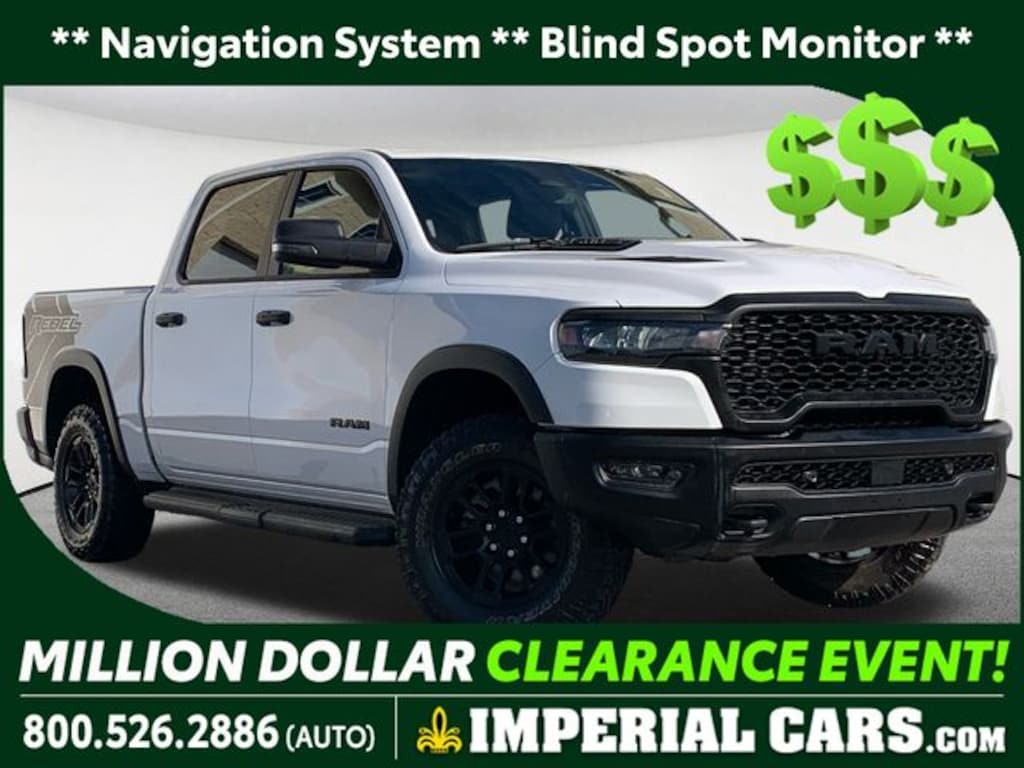 Recent Arrival! Navigation System, Blind Spot Monitor, Lane Keeping Assistance, Apple CarPlay / Android Auto, Adaptive Cruise Control, Power Leather Seats, Power Seats, Heated Seats, Backup Camera, Bluetooth, Cruise Control, Power Windows, Power Locks, Steering Wheels Radio Controls, Aluminum Wheels, Running Boards / Side Steps, Towing Package, Auto Power-Folding Mirrors, Auto-Dimming Exterior Driver Mirror, Black Premium Power Mirrors, Convex Wide-Angle Exterior Mirror Insert, Exterior Mirrors Courtesy Lamps, Exterior Mirrors w/Heating Element, Exterior Mirrors w/Supplemental Signals, GPS Navigation, Navigation System, Power Adjustable Pedals, Quick Order Package 21W Rebel, Rear Window Defroster, Rebel Level 1 Equipment Group, Remote Tailgate Release, Wireless Charging Pad. Bright White Clearcoat 2025 Ram 1500 Rebel 4D Crew Cab Rebel 4WD 8-Speed Automatic